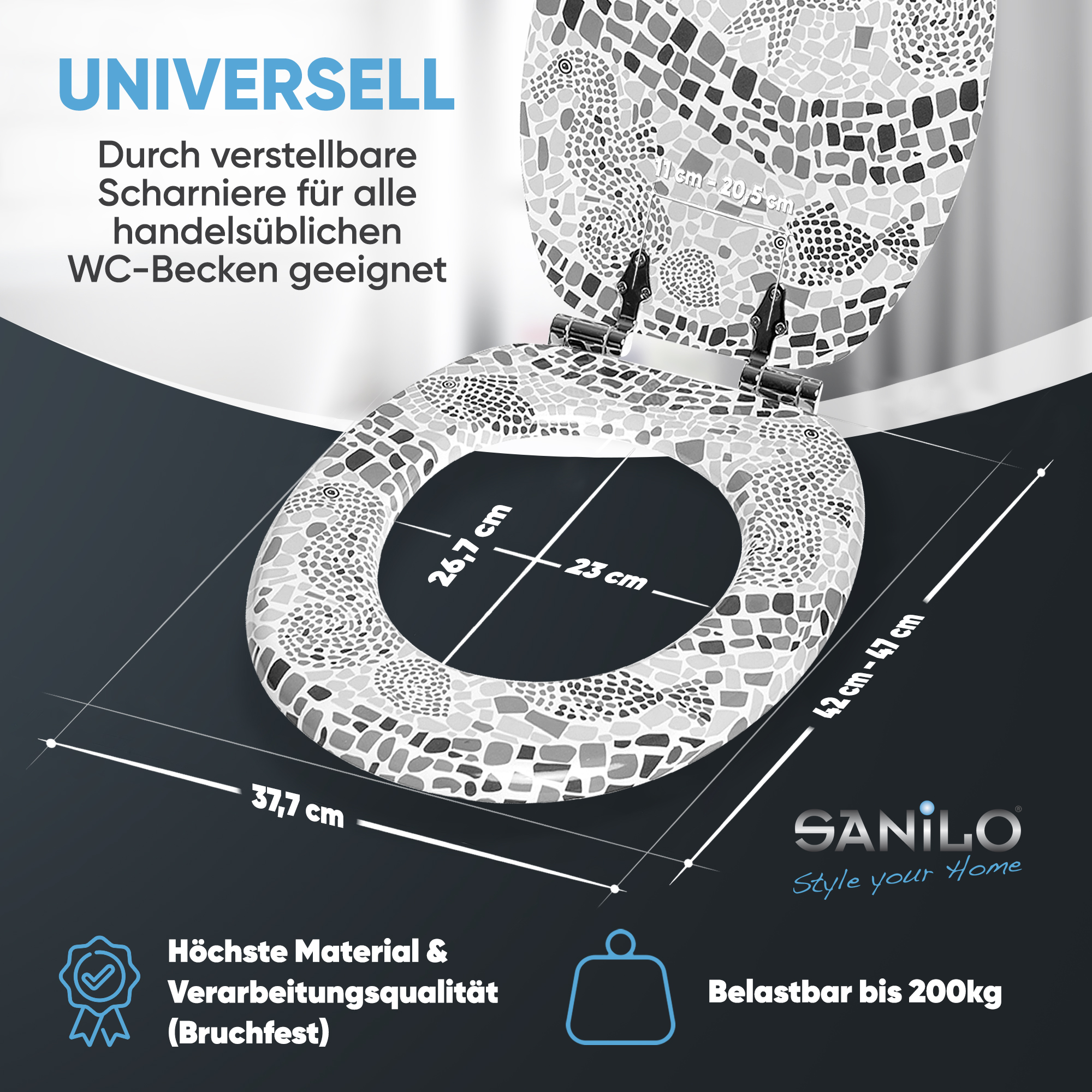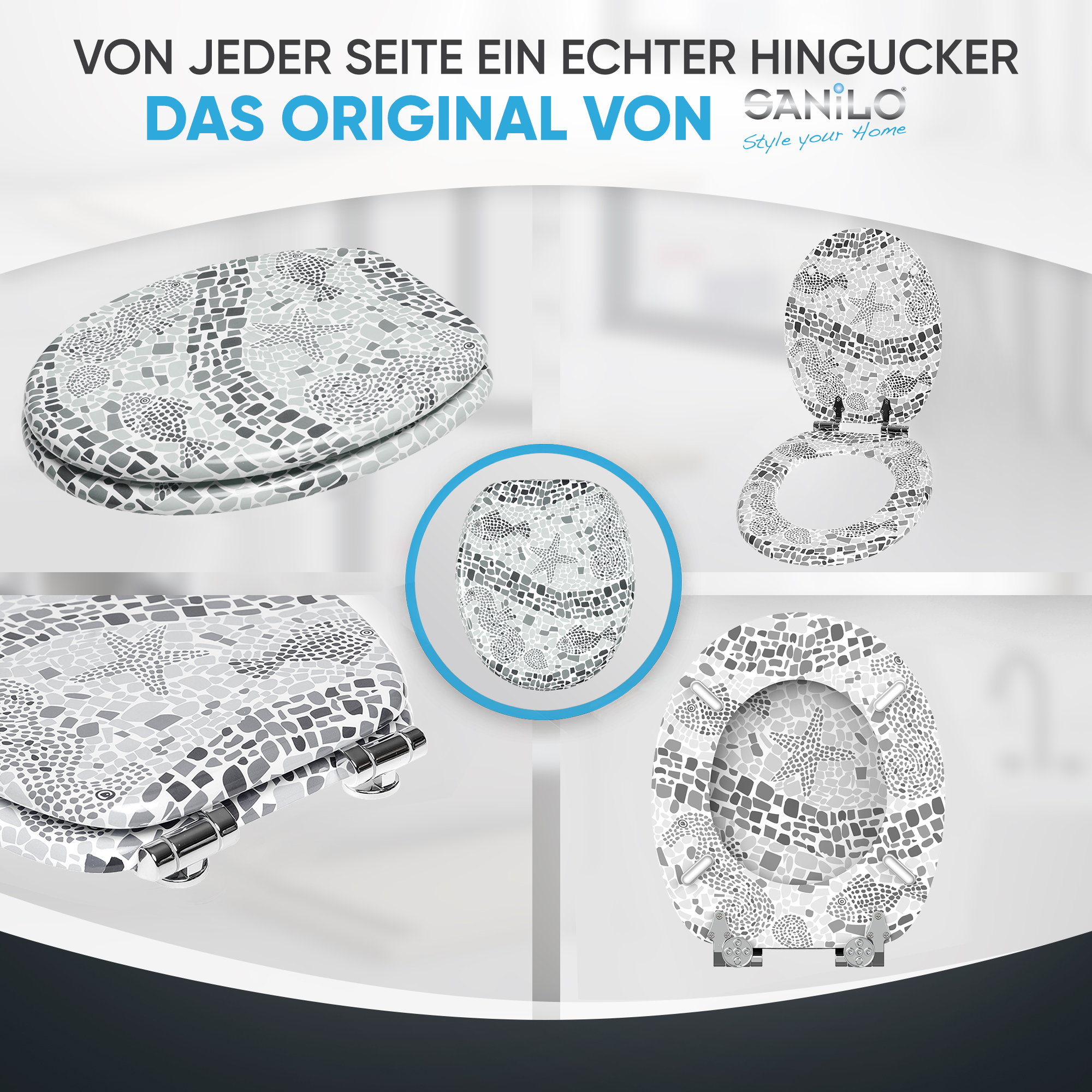 WC-Sitz mit Absenkautomatik Mosaic World Grey - Premium Toilettendeckel direkt vom Hersteller