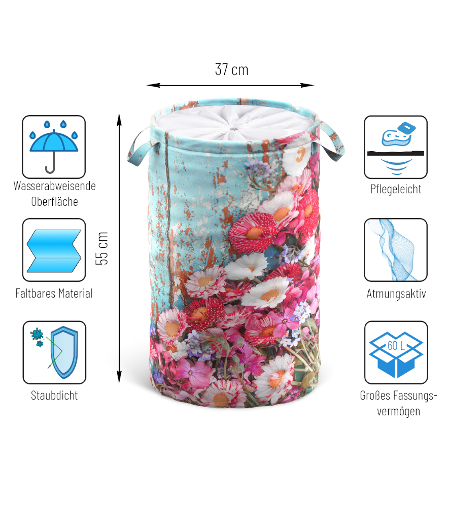 • Platzsparend ✓ Der Wäschekorb eignet sich mit einer Höhe von 55 cm, ⌀ 37 cm ideal für kleine Räume. Mit 60 Litern bietet die Wäschebox viel Stauraum für eine Vielzahl an Gegenständen.