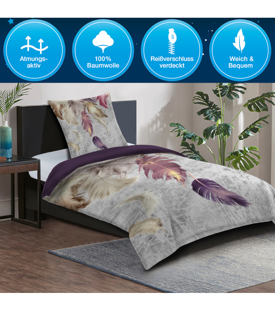 Guter Schlaf ✓ Durch die atmungsaktive und hautfreundliche Baumwolle schläft es sich besonders gut. Die feuchtigkeitsabsorbierende und temperaturausgleichende Bettwäsche sorgt für ein ideales Schlafgefühl.