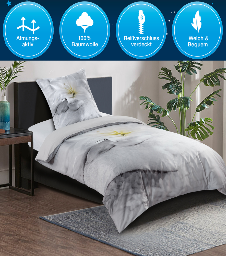 Guter Schlaf ✓ Durch die atmungsaktive und hautfreundliche Baumwolle schläft es sich besonders gut. Die feuchtigkeitsabsorbierende und temperaturausgleichende Bettwäsche sorgt für ein ideales Schlafgefühl.