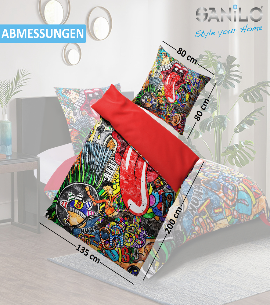 Wendebettwäsche ✓ Der moderne Bettbezug von SANILO® überzeugt durch kräftige und schöne Designs die farblich mit der Rückseite von Kissen- und Bettbezug abgestimmte sind. Dadurch kann die Bettwäsche ideal als Wendebettwäsche genutzt werden.