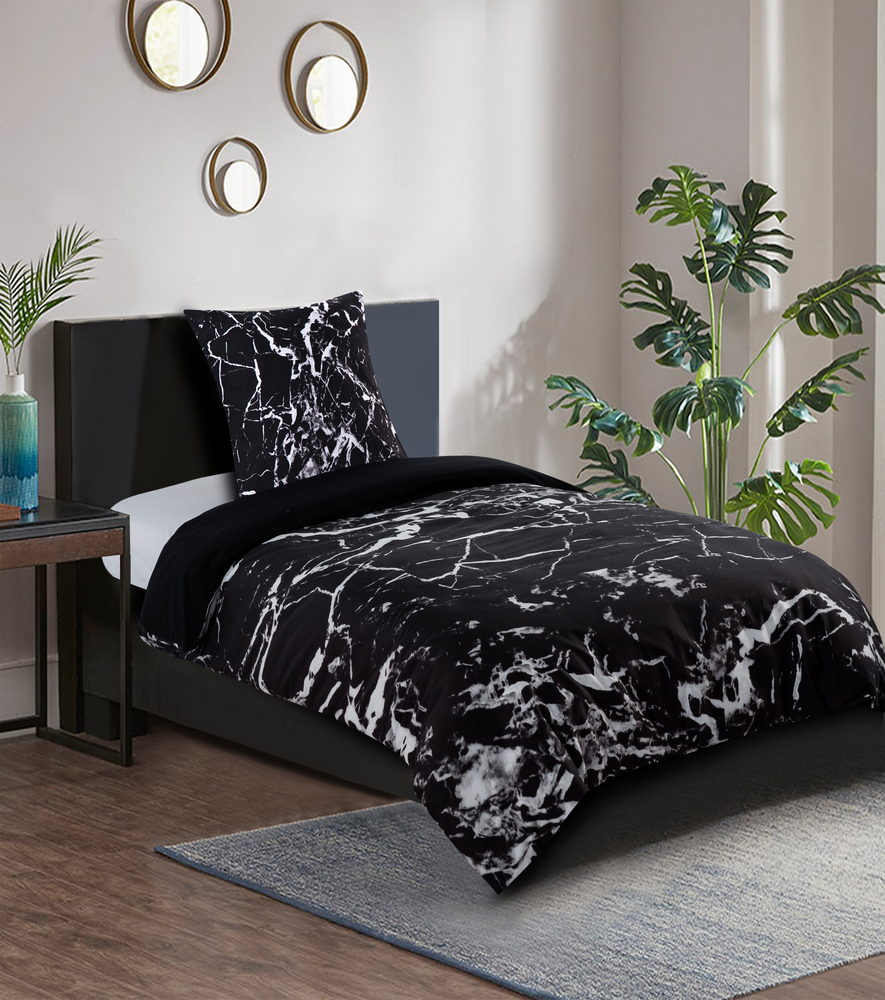 Bettwäsche Marmor Schwarz 135 x 200 cm