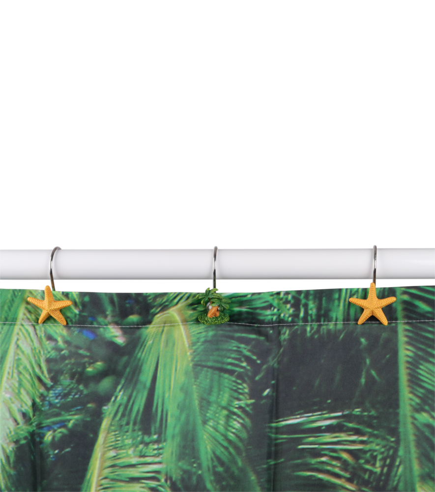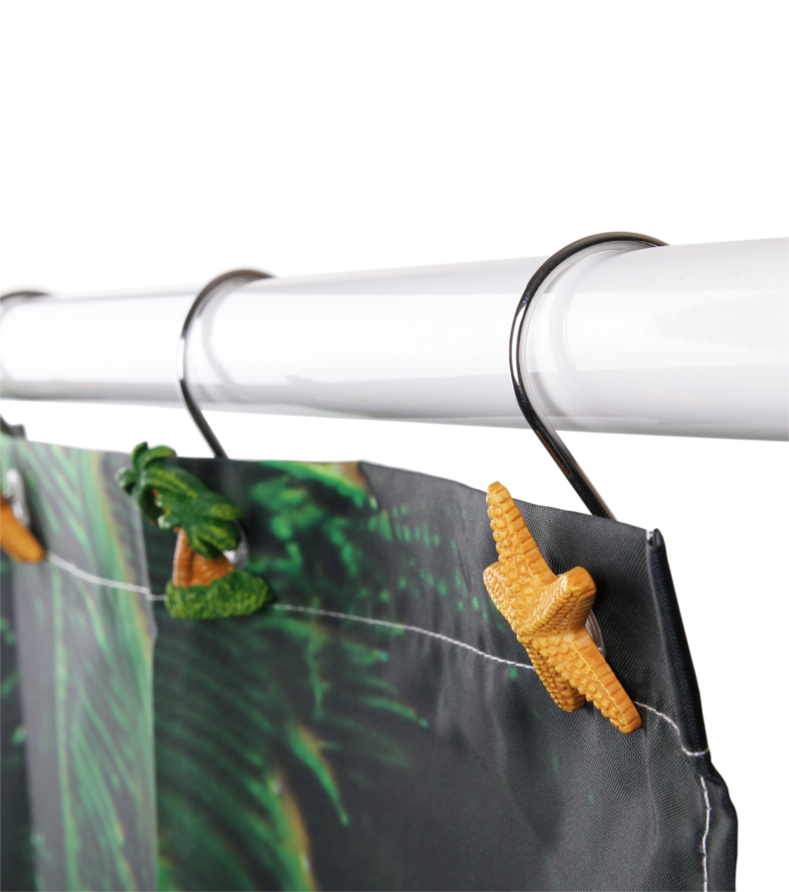 • 12 Duschvorhangringe (6x Palmen und 6x mit Seestern)
