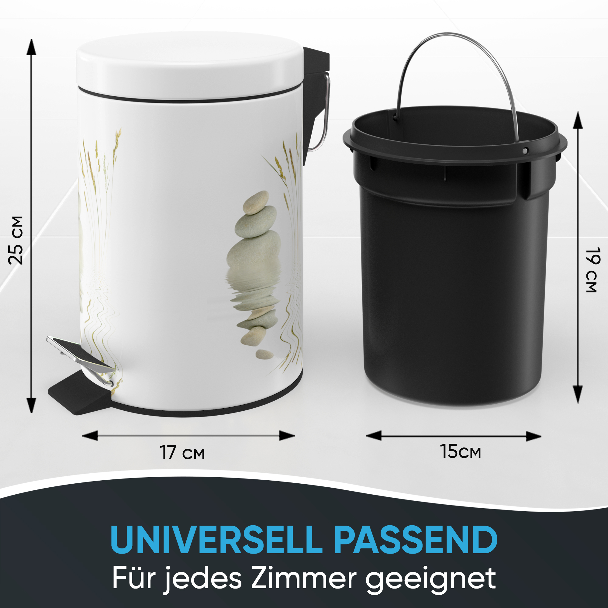 • PRAKTISCH: Der herausnehmbare Inneneimer mit einem Volumen von 3 Litern kann leicht am Tragehenkel herausgeholt und geleert werden. Eine Mülltüte kann unauffällig um den Rand gelegt werden.