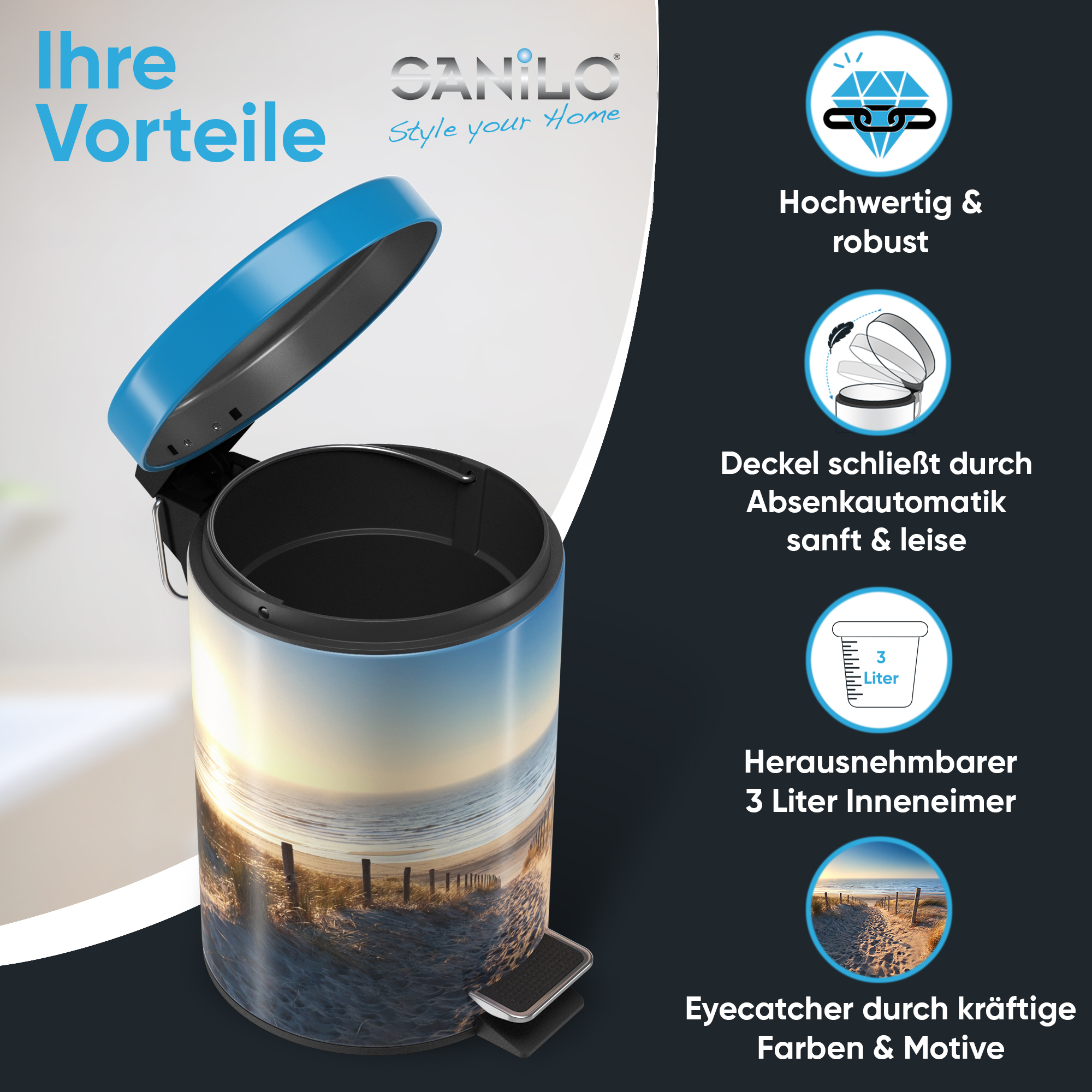 • EINZIGARTIGE DESIGNS: Die Sanilo Kosmetikeimer sind der Blickfang in jedem Badezimmer. Wählen Sie aus vielen Motiven Ihr Lieblingsdesign und bereichern Ihr Badezimmer mit einem echten Highlight.
