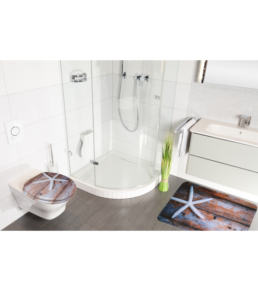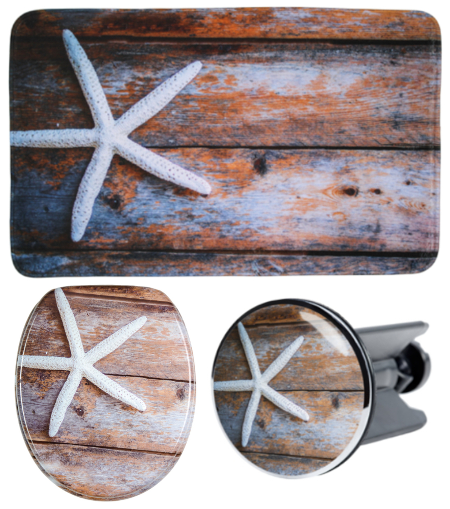 WC-Sitz, Badteppich 70 x 110 cm und Waschbeckenstöpsel