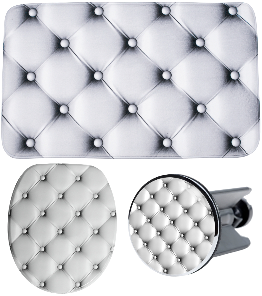WC-Sitz, Badteppich 70 x 110 cm und Waschbeckenstöpsel