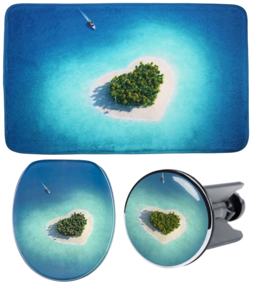 WC-Sitz, Badteppich 70 x 110 cm und Waschbeckenstöpsel