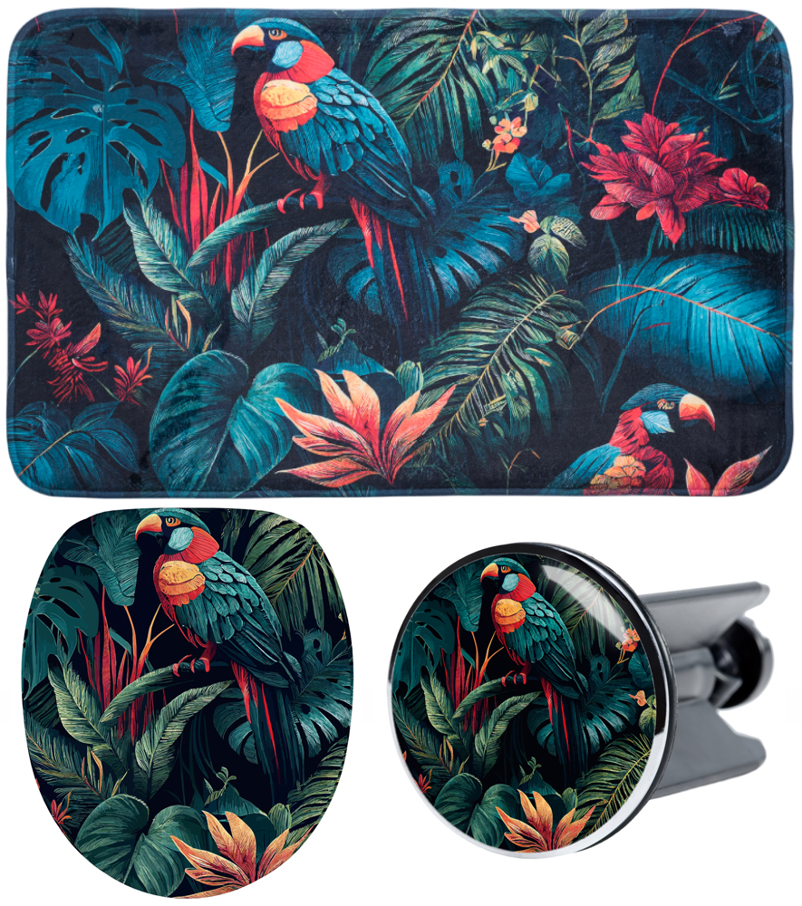 WC-Sitz, Badteppich 70 x 110 cm und Waschbeckenstöpsel