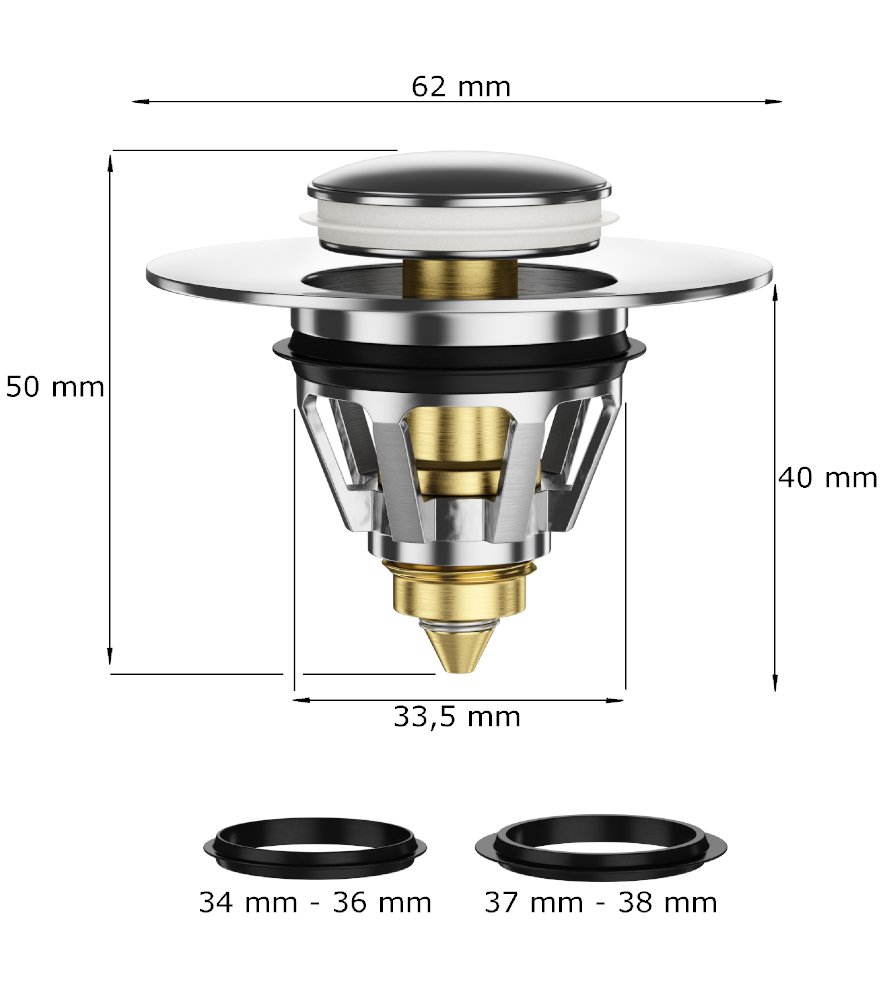 • Universell ✓ Der Sanilo Pop-Up Waschbeckenstöpsel passt in alle handelsüblichen Waschbecken mit einem Innendurchmesser von 3,4 – 3,8 cm.
